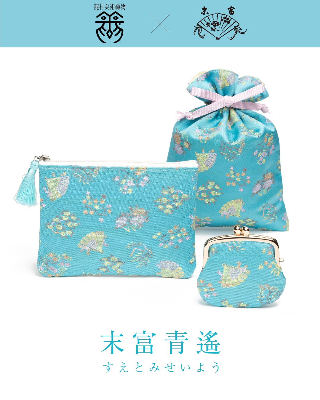 2021年よりコラボレーションさせていただいております龍村美術織物様にこの度、念願が叶い、特別に末富オリジナル、包装紙柄の織物「末富青遙(スエトミセイヨウ)」を作製していただきました。