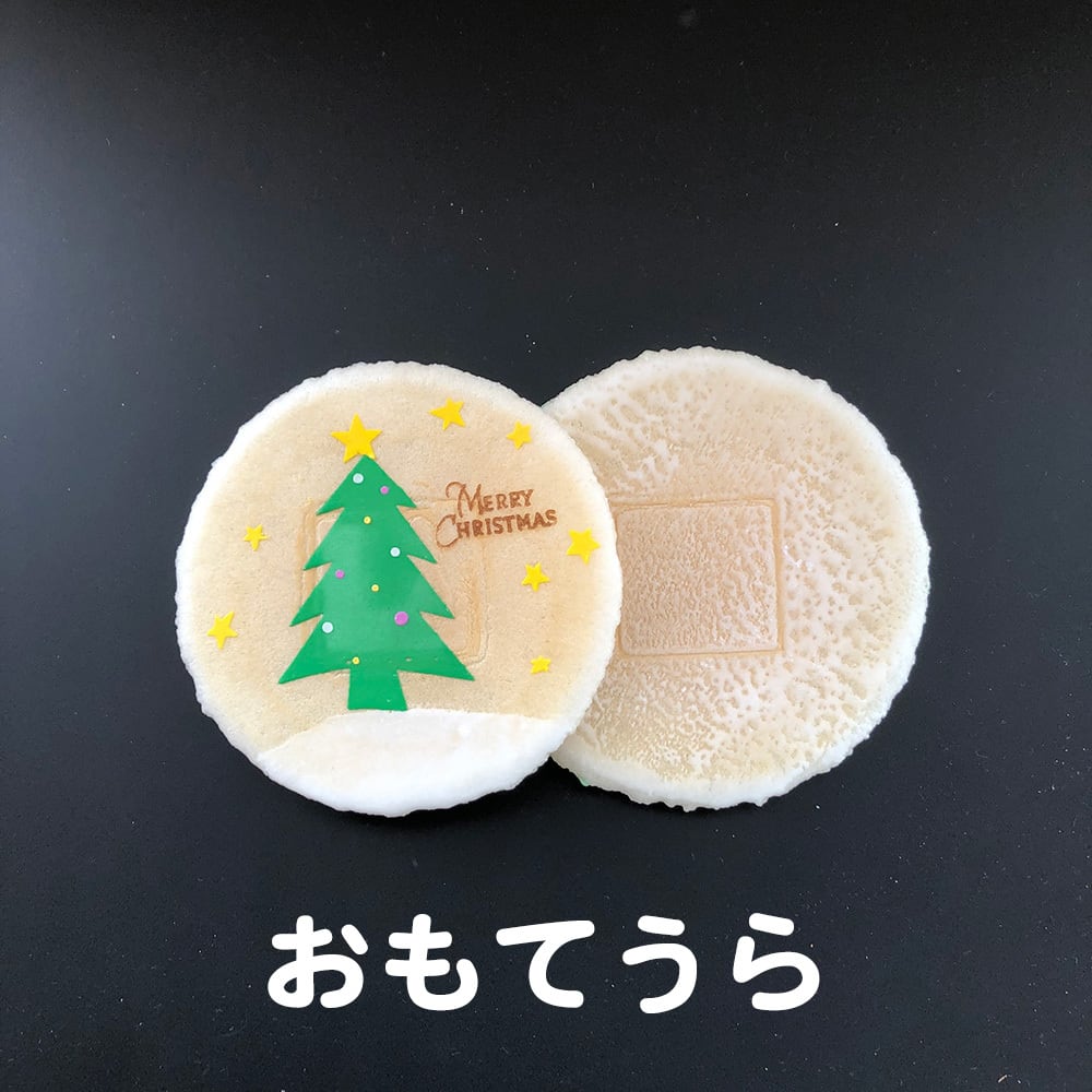 直径15cmほどの大きな麩焼煎餅にクリスマスツリーを描きました。