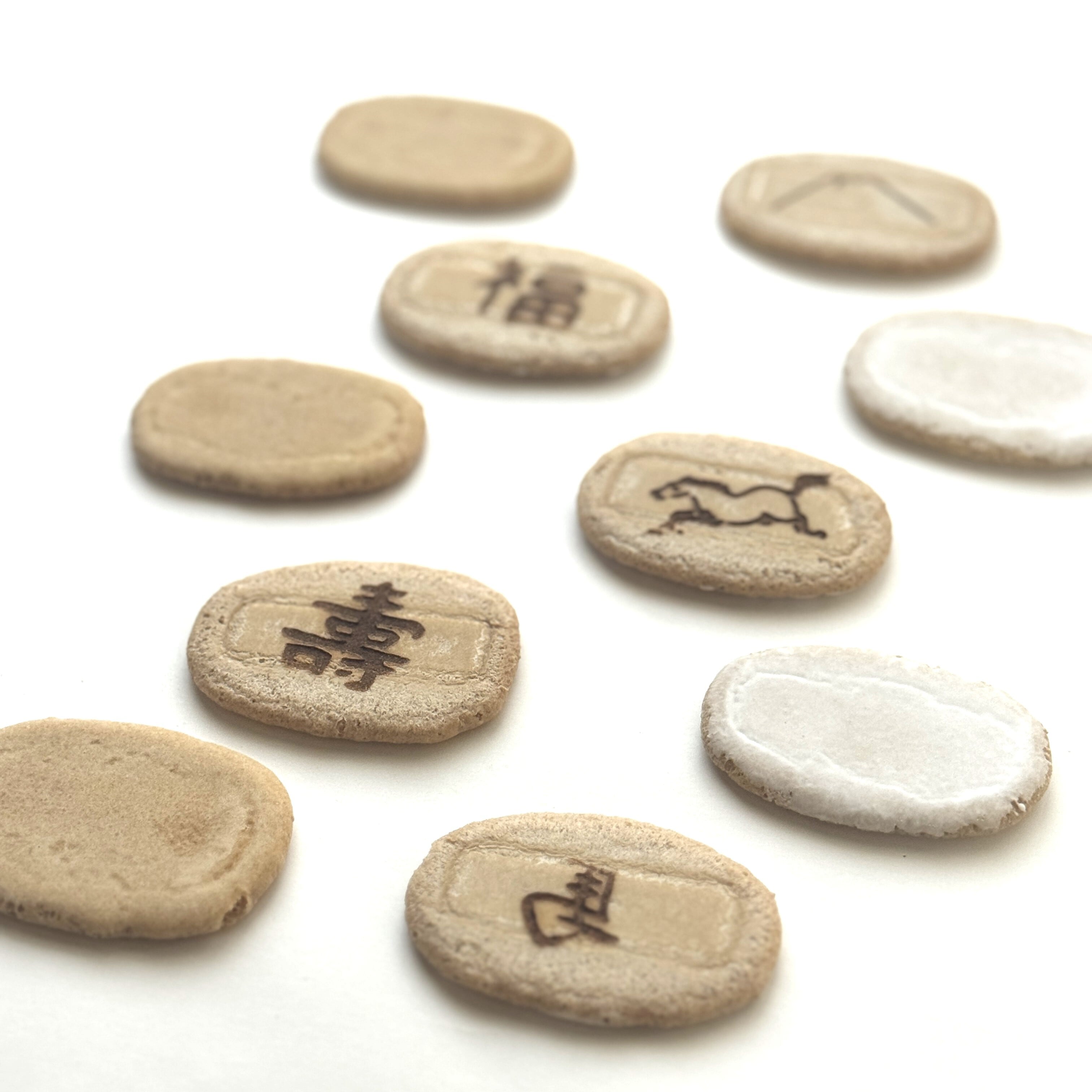 小判型の麩焼煎餅に新年にふさわし干支や福寿の焼印を施し、白蜜と甘辛蜜の2種類の味をお楽しみいただけます。