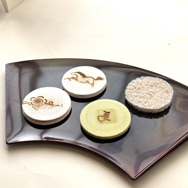 干支、紅白梅、福辰、松葉、千代結びなど新年を寿ぐ干菓子をご用意いたしました。