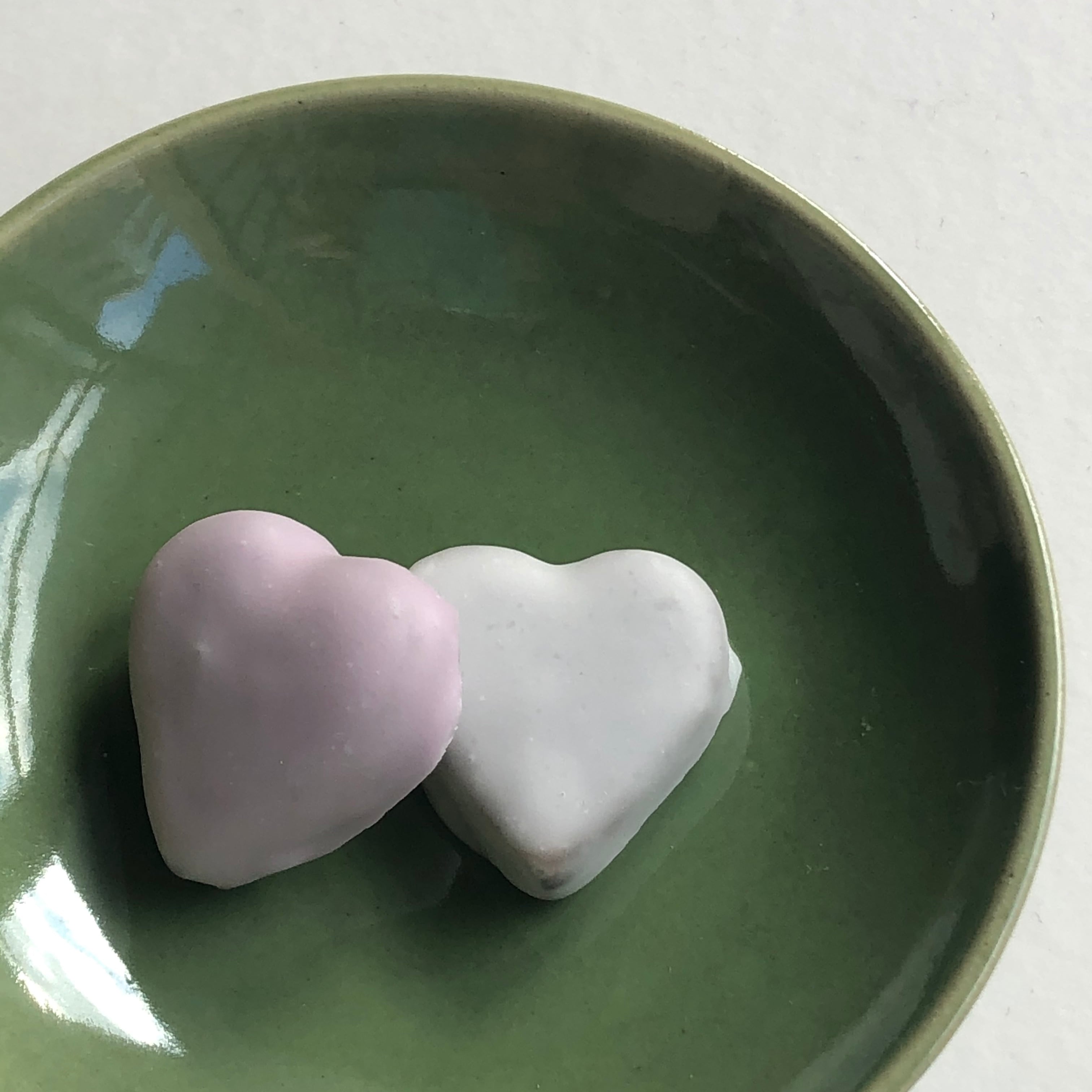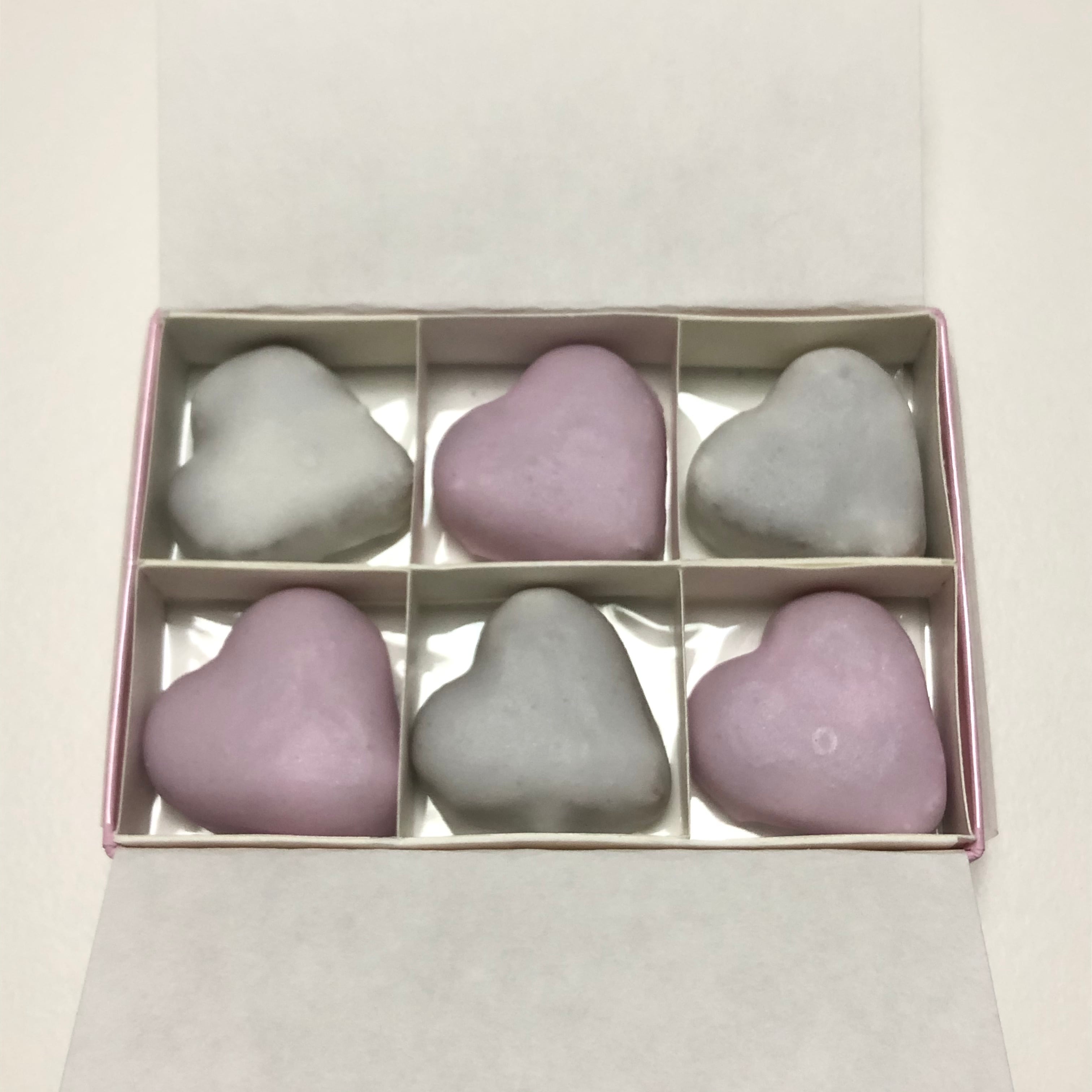 ハート型の松露(粒あんに砂糖蜜をかけ乾燥させた干菓子)の6個入です。